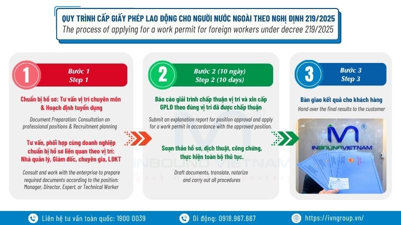 INBOUND VIETNAM là đơn vị hàng đầu trong việc tư vấn hồ sơ nhân sự nước ngoài tại Việt Nam. Chúng tôi cung cấp giải pháp tư vấn và thực hiện ủy quyền trọn gói thủ tục cấp Giấy phép Lao động cho doanh nghiệp của bạn, giúp tận dụng tối đa những điểm cộng của Nghị định 219/2025/NĐ-CP.